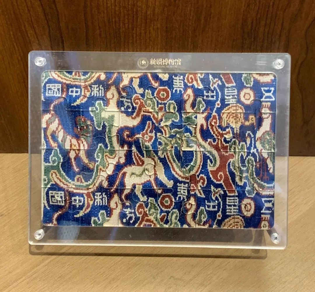 In the Xinjiang Uygur Autonomous Region Museum, the experiment of bringing artifacts to life never stops. Here is a fascinating creation — a jigsaw inspired by the Eastern Han Dynasty (25-220) brocade arm guard embroidered with the Chinese words wuxing chu dongfang li zhongguo (Five stars rise in the East, benefiting China).