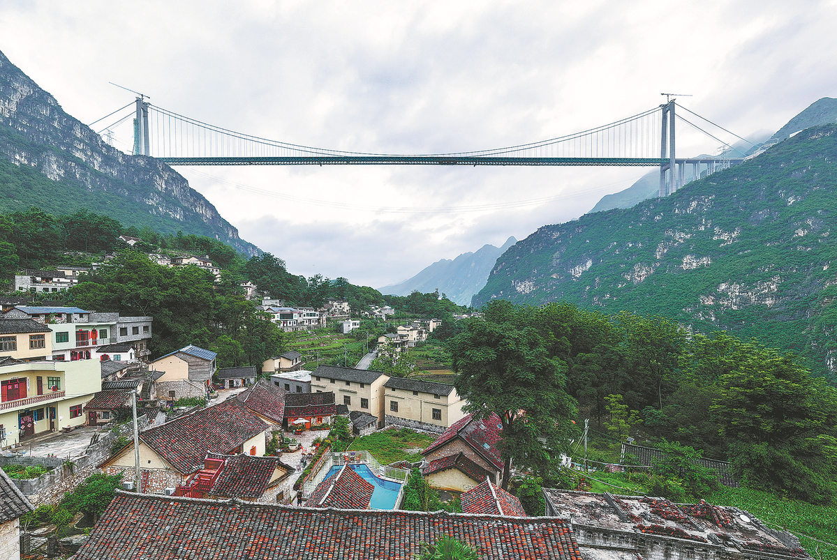 Huajiang village in Zhenfeng county sits about 1 kilometer from the span. The village, listed among China's traditional villages, has seen the promise of improved access quickly turn into preparations for incoming tourists.