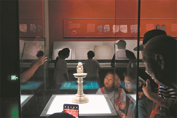 Two children are fascinated by a pottery iron from the Western Jin Dynasty (265-316).[Photo provided to China Daily]