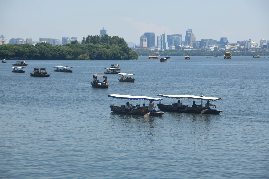 Tourists enjoy boat rides on West Lake in Hangzhou, Zhejiang province. [Photos/IC]