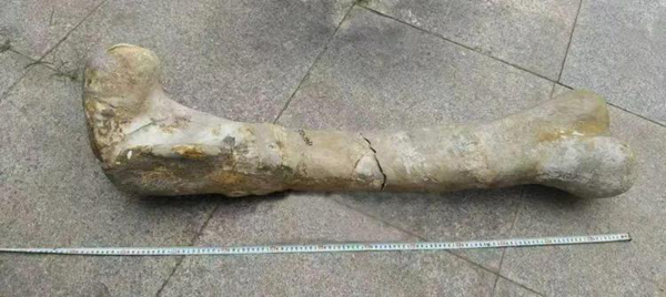 Researchers identify a large tyrannosaur femur fossil in Weifang's Zhucheng county, Shandong province. [Photo/Dazhong News]