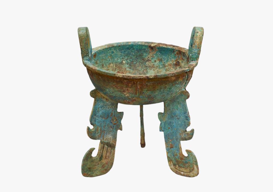 Bronze ding (cooker) with blade feet, from the collection of the Institute of Archaeology of the Chinese Academy of Social Sciences [Photo/Tianjin Museum official WeChat account]