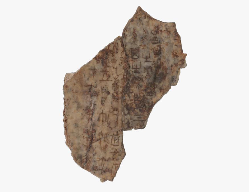 An oracle bone with the earliest Chinese characters for carriage ( che) and horse ( ma), from the collection of Tianjin Museum [Photo/Tianjin Museum official WeChat account]