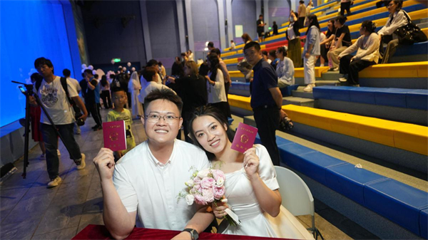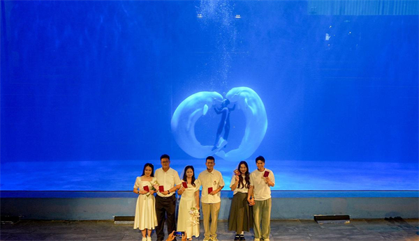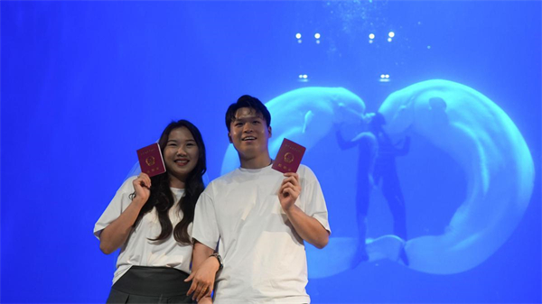 The ceremony, which was conducted in collaboration with Harbin Polar Park and the Harbin Civil Affairs Bureau, marked the country's first "Deep Sea Certification" marriage registration ceremony and the country's first mobile registration point set in a polar marine park, providing newly-married couples with a unique and romantic experience.