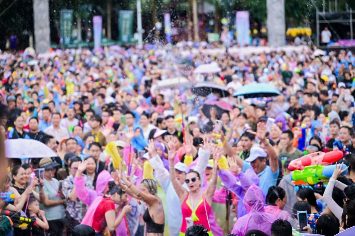 Tens of thousands of people have taken part in Friday's opening of the 2025 Hainan Seven Fairies Hot Spring Festival, turning the streets of Baoting Li and Miao autonomous county into a lively water-soaked arena.