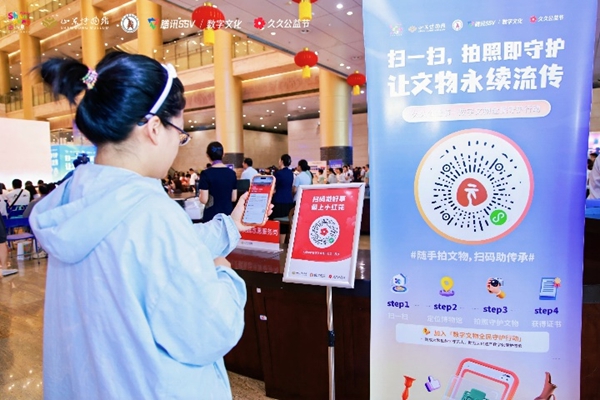 A visitor scans QR codes to participate in the public digital heritage preservation campaign on Aug 29. [Photo provided to chinadaily.com.cn]