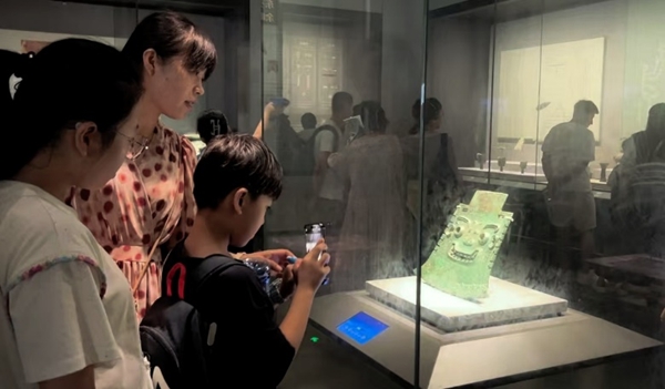 Visitors take pictures of a popular artifact at the Shandong Museum on Aug 29. [Photo/chinadaily.com.cn]