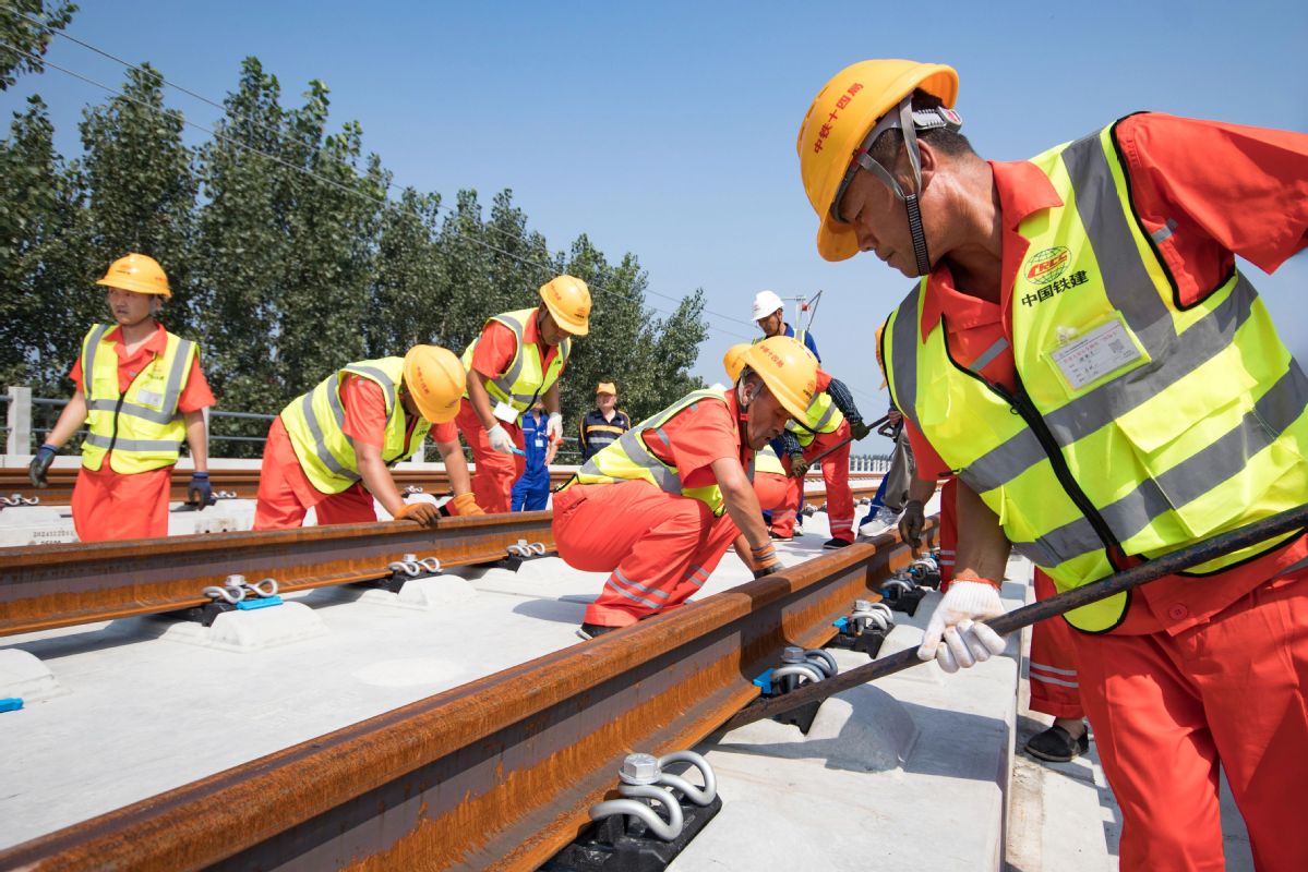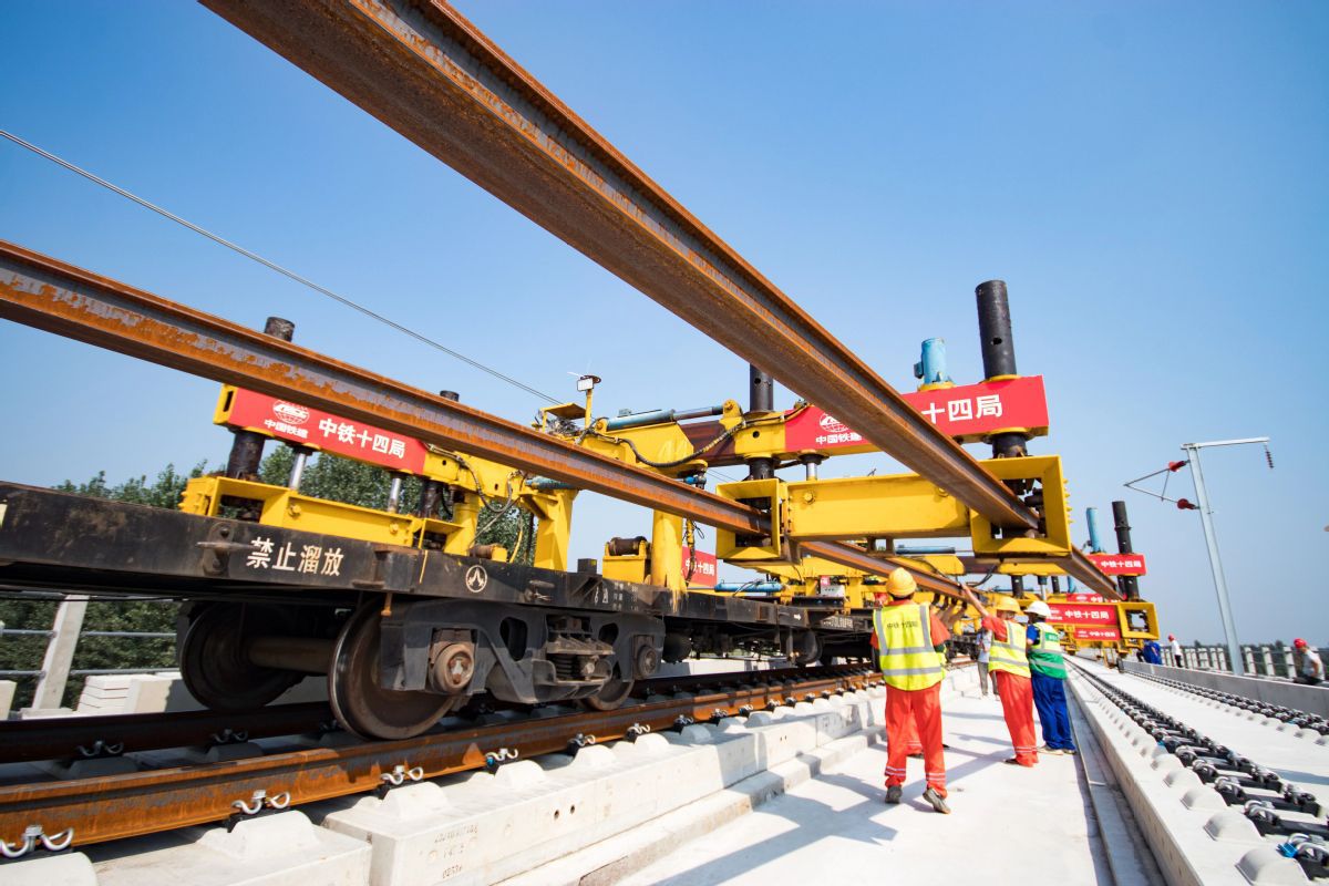 Track-laying operation officially kicked off on Monday throughout the Xiong'an-Shangqiu high-speed railway. With a designed speed of 350 km per hour, the 552-kilometer-long railway will connect Xiong'an in North China's Hebei province and Shangqiu in Central China's Henan province after completion.