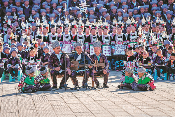 Xiaohuang village in Congjiang county, Guizhou province, hosts a festival to showcase the traditional Grand Song in 2023.