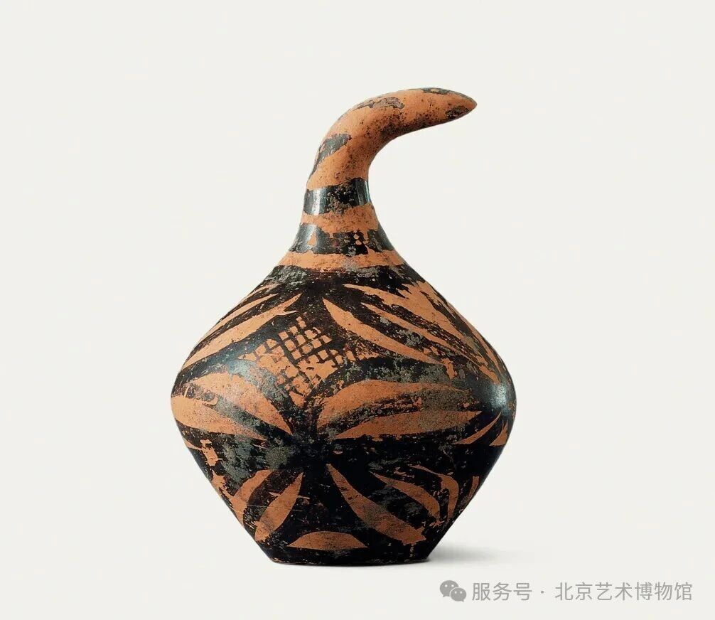 Painted pottery bell with diamond net motifs and a curved handle, from the collection of Gansu Provincial Museum [Photo/Beijing Art Museum official WeChat account]