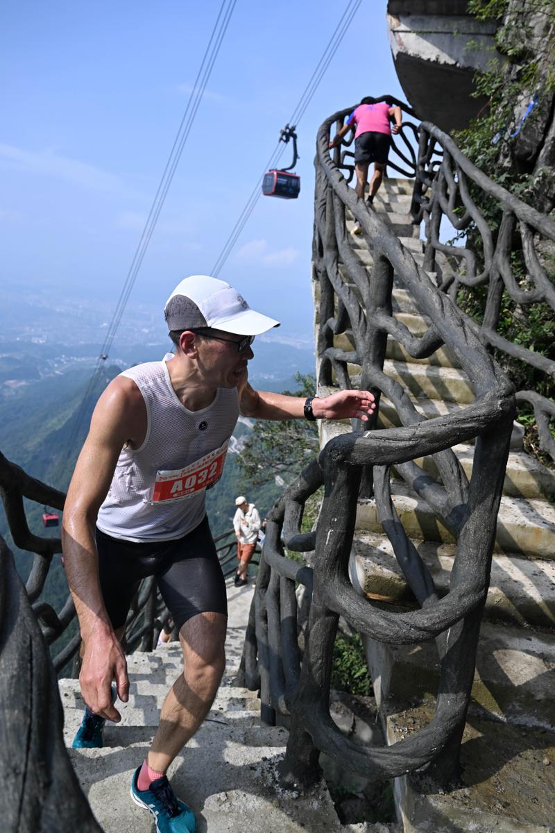 Professional runners pushed their limits amid breathtaking scenery and danger by racing along cliffside plank paths on Tianmen Mountain in Zhangjiajie, Hunan province, over the weekend. [Photo by Guo Liliang/For chinadaily.com.cn]