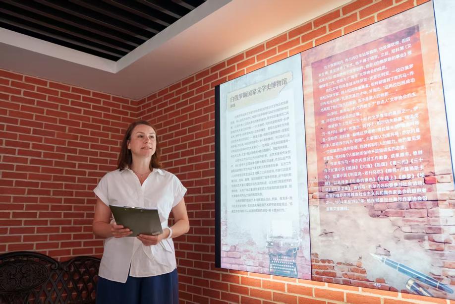The event also features a collaborative art exhibition with representatives from Belarus, unveiling illustrations from Chinese and Belarusian anti-Fascist literary works. [Photo by Zhou Junchao for Chinadaily.com.cn]