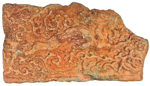 A brick with molded motifs of dragons is among many Yuan imperial constructional components unearthed from the Zaobanchu site. [Photo by Jiang Dong/China Daily]