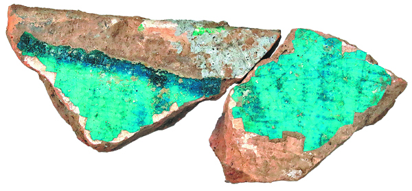 Peacock blue glaze fragments unearthed from the Zaobanchu site. [Photo by Jiang Dong/China Daily]