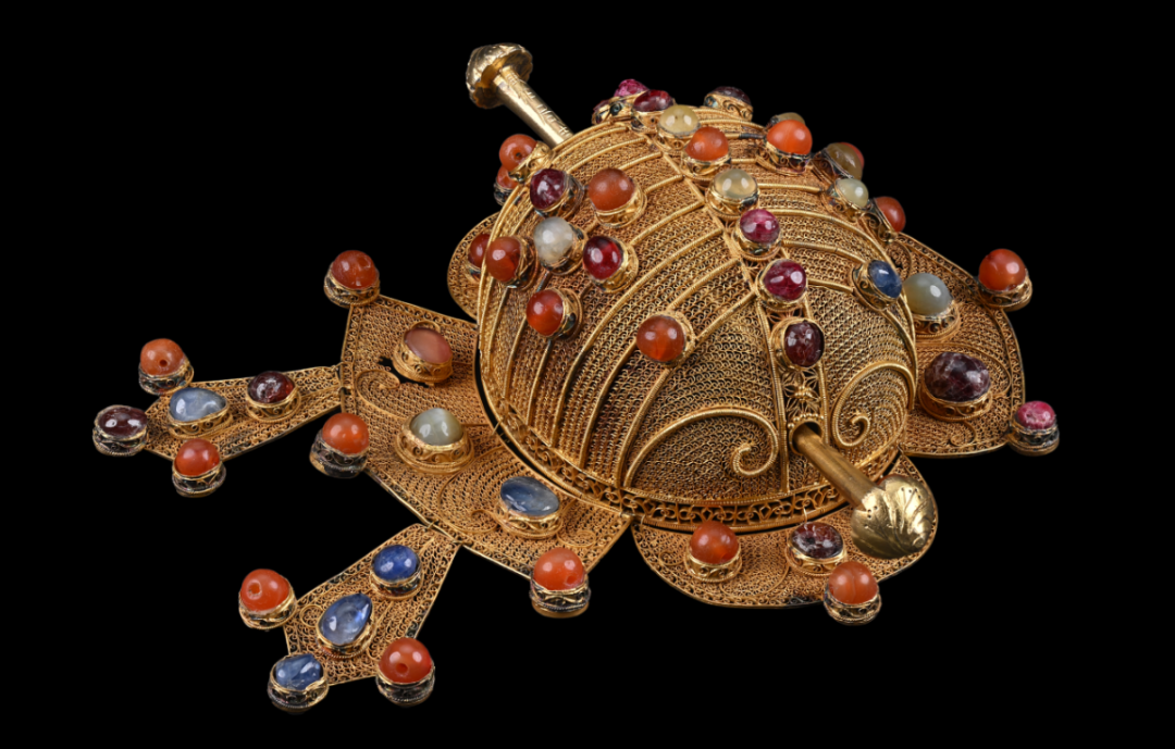 Gold crown embedded with gems, Ming Dynasty [Photo/Jiaxing Museum official WeChat account]