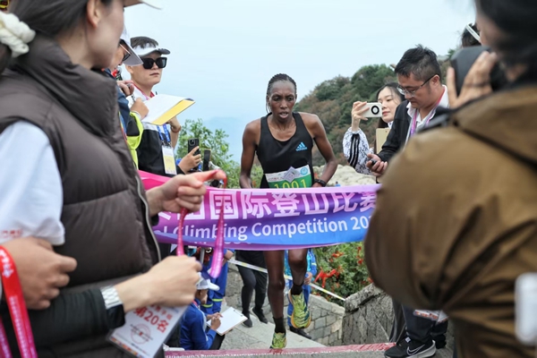 Gladys Jerono from Kenya wins the championship in the youth women's group of the climbing race with a time of one hour 11 minutes 25 seconds. [Photo by Chen Yang/provided to chinadaily.com.cn]
