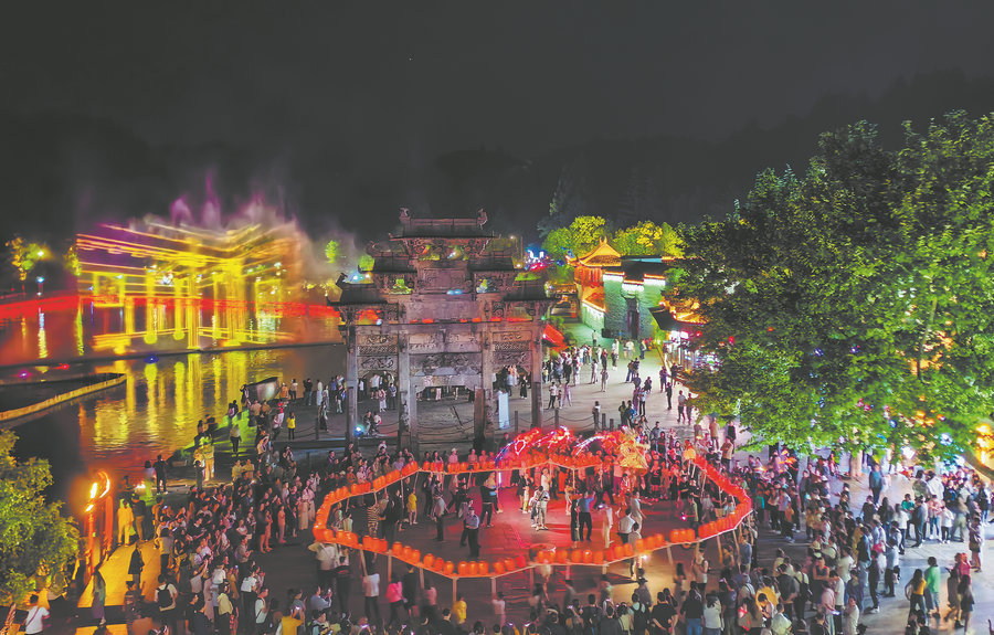 Bandenglong (bench dragon), a dazzling traditional lantern performance, wows audiences in Xidi village, Huangshan, Anhui province. ZHANG SHELI/XINHUA