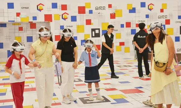 Visitors watch the movie on VR devices. [Photo/WeChat account: gh_ccfd1293bad8]