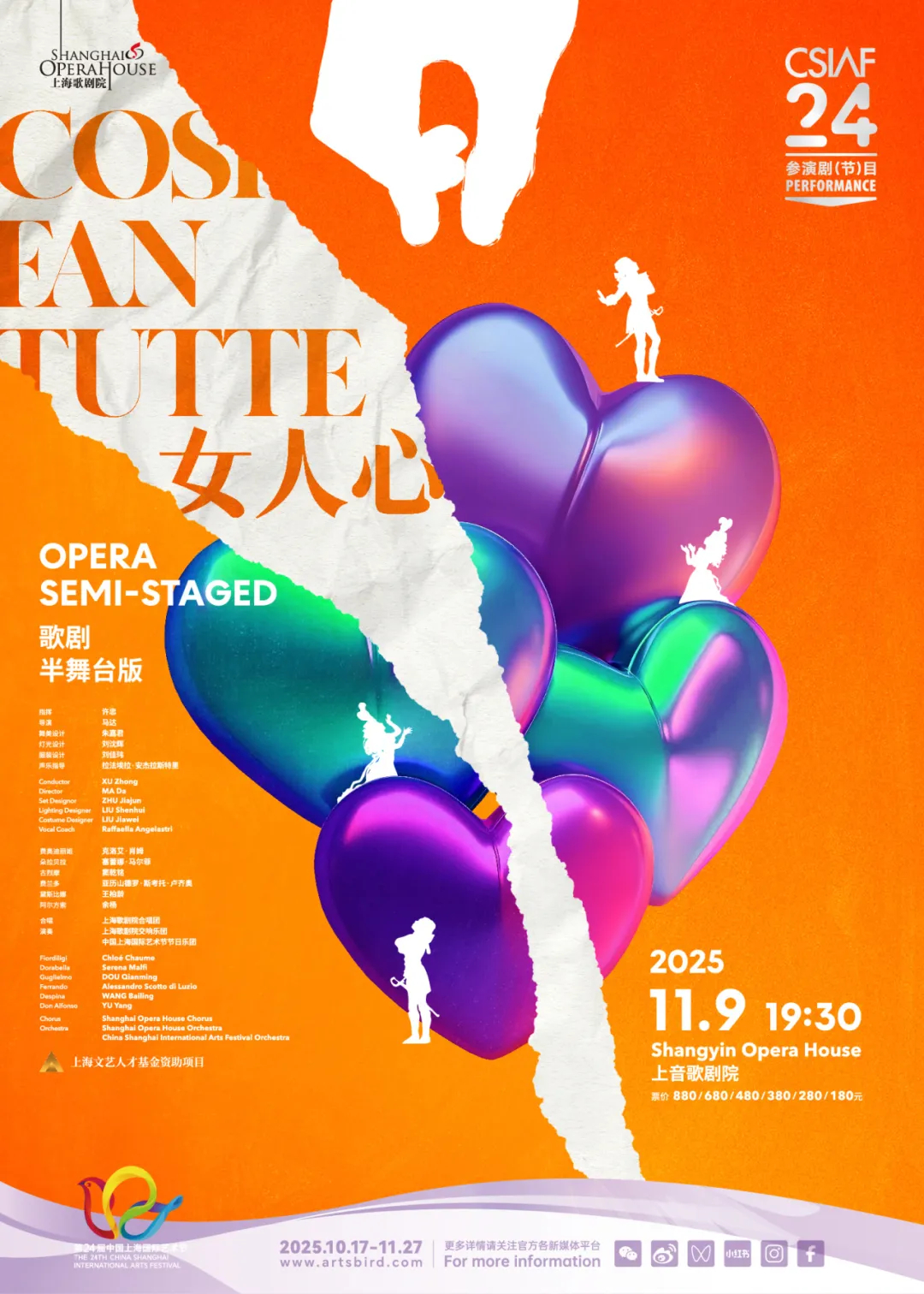 The Shanghai Opera House will present a new semi-staged production of Mozart’s Così fan tutte at the 24th China Shanghai International Arts Festival on Nov 9. Conducted by maestro Xu Zhong, the performance will unite top international singers, a chorus, and an orchestra for a fresh, powerful interpretation that highlights the pure brilliance of Mozart’s music.