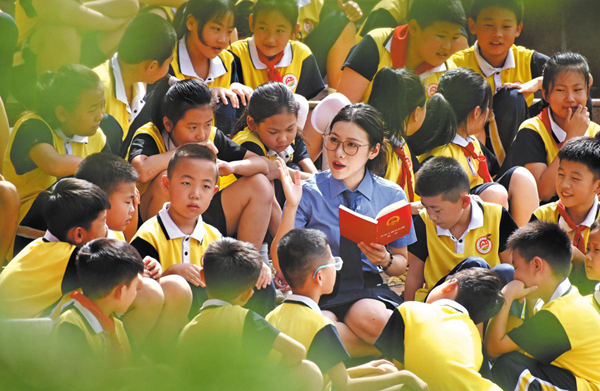 A prosecutor gives a lesson in legal awareness to students on the campus of Luyang Primary School in Yiyuan on Sept 4. ZHAO DONGSHAN and YOU KUIKUI/FOR CHINA DAILY