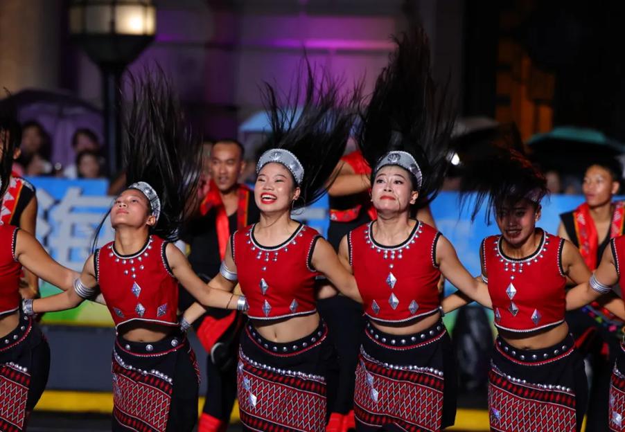 ethnic group in Yunnan province present a dance performance during the parade. [Photo provided to chinadaily.com.cn]