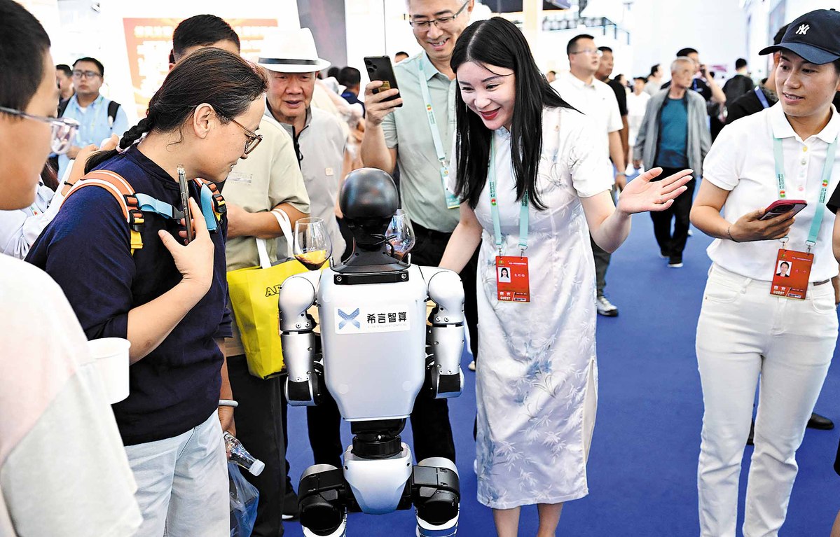 People surround and get to know a humanoid robot during the China-Arab States Expo on Aug 28. ZUO MINGYUAN/FOR CHINA DAILY