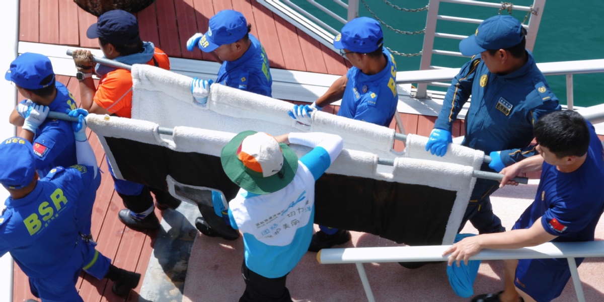 Doctors from the Blue Ocean Conservation and Rescue Center at Hainan Ocean Paradise Resort in Lingshui Li autonomous county developed a comprehensive treatment plan. Care included intravenous fluids, intramuscular injections, and oral medication.