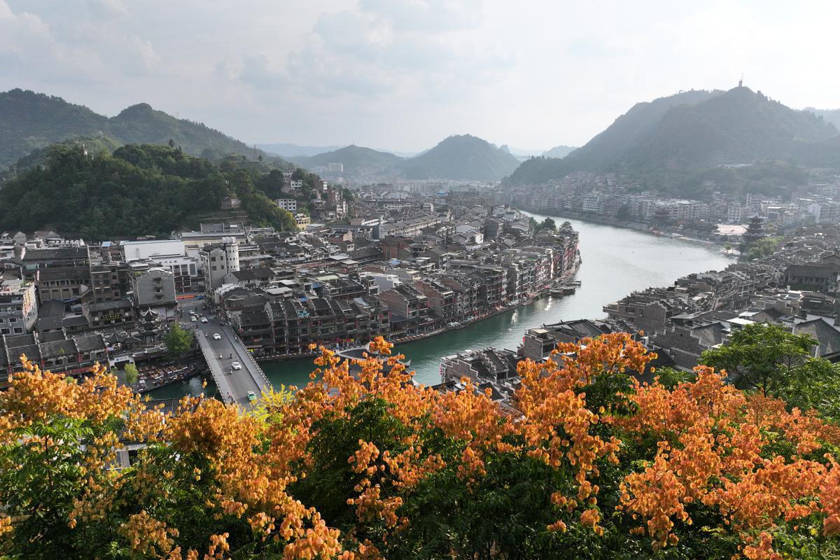 As autumn arrives, the hillsides around Zhenyuan Ancient Town in Guizhou province are blanketed with golden rain trees at peak bloom.