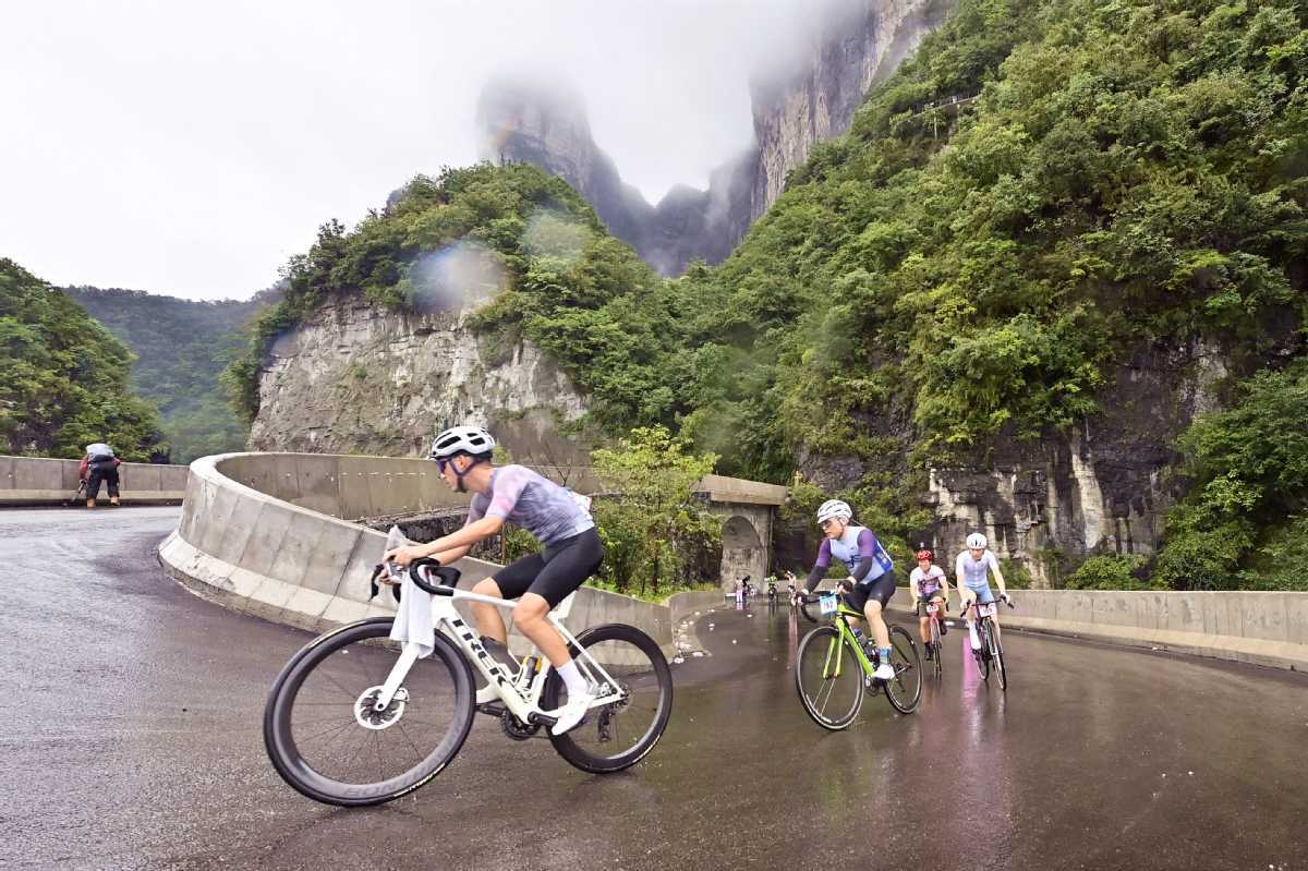 International cyclists conquer Tianmen Mountain's cliffside road