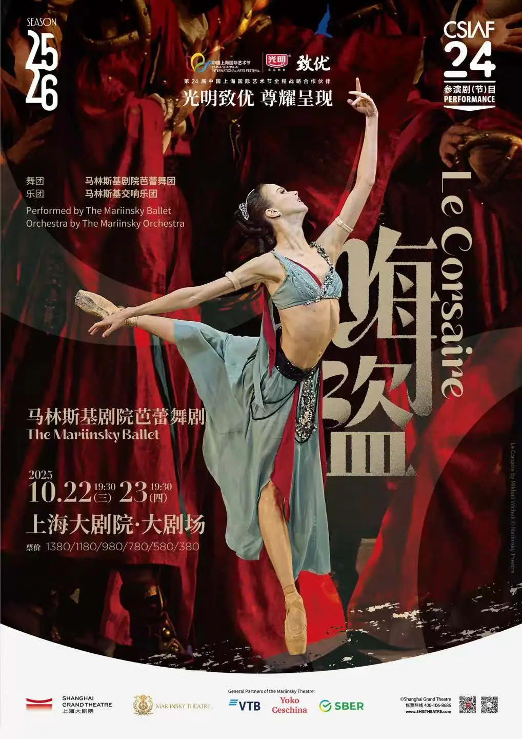 The world-renowned Mariinsky Ballet will bring its legendary Le Corsaire to the Shanghai Grand Theatre for the 24th China Shanghai International Arts Festival (CSIAF) on Oct 22 and 23. With dazzling technique, romantic flair and a star-studded cast, this masterpiece sails onto the stage in a breathtaking celebration of ballet’s finest traditions.