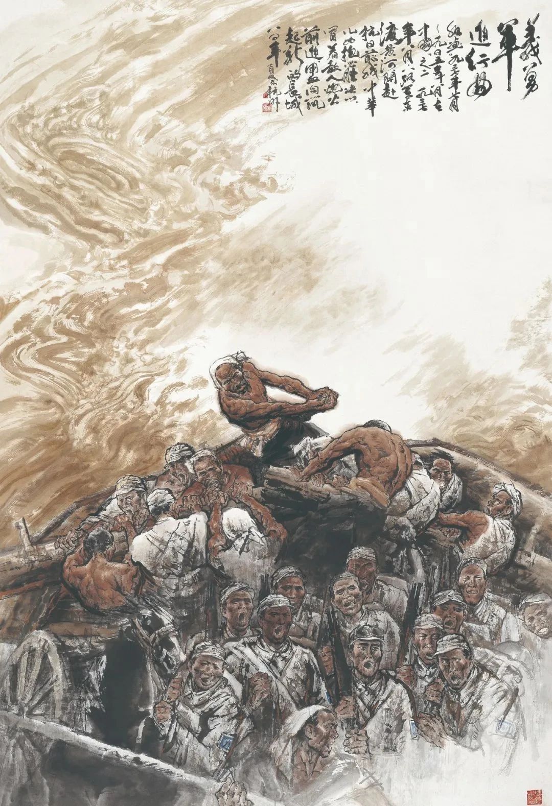 Defend the Yellow River Trilogy – March of the Volunteers, traditional Chinese painting, Feng Yuan, 1984, personal collection of the artist [Photo/National Art Museum of China official WeChat account]