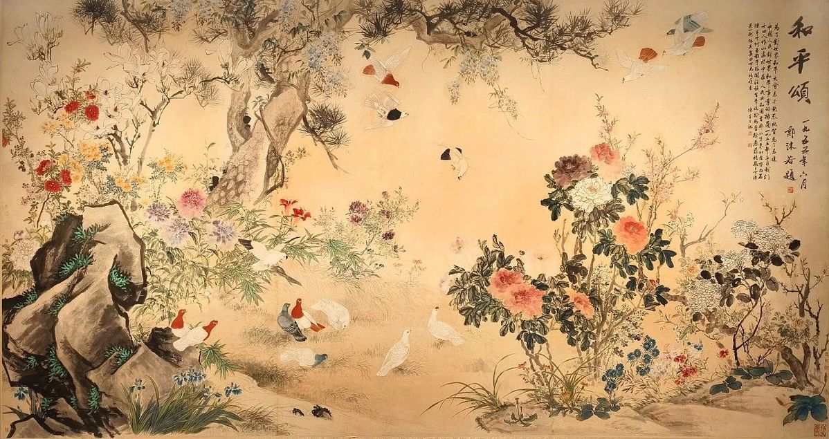 Ode to Peace, traditional Chinese painting, Qi Baishi (1864-1957), Chen Banding (1876-1970), He Xiangning (1878-1972) and others, 1955, from the collection of the Chinese People's Association for Friendship with Foreign Countries [Photo/National Art Museum of China official WeChat account]