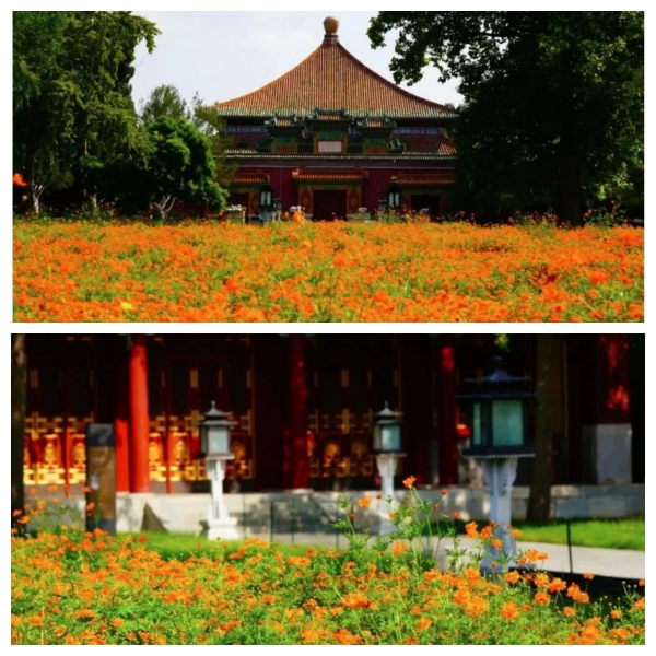 The sulfur cosmos fields near Wanfolou Scenic Area are at their peak now. Vast swathes of brilliant yellow flowers have transformed the area into a vibrant seasonal tapestry. Spanning nearly 1,000 square meters, these bright yellow flowers make up a beautiful counterpoint to the historic construction behind them, blending natural charm and historic heritage into a serene masterpiece.