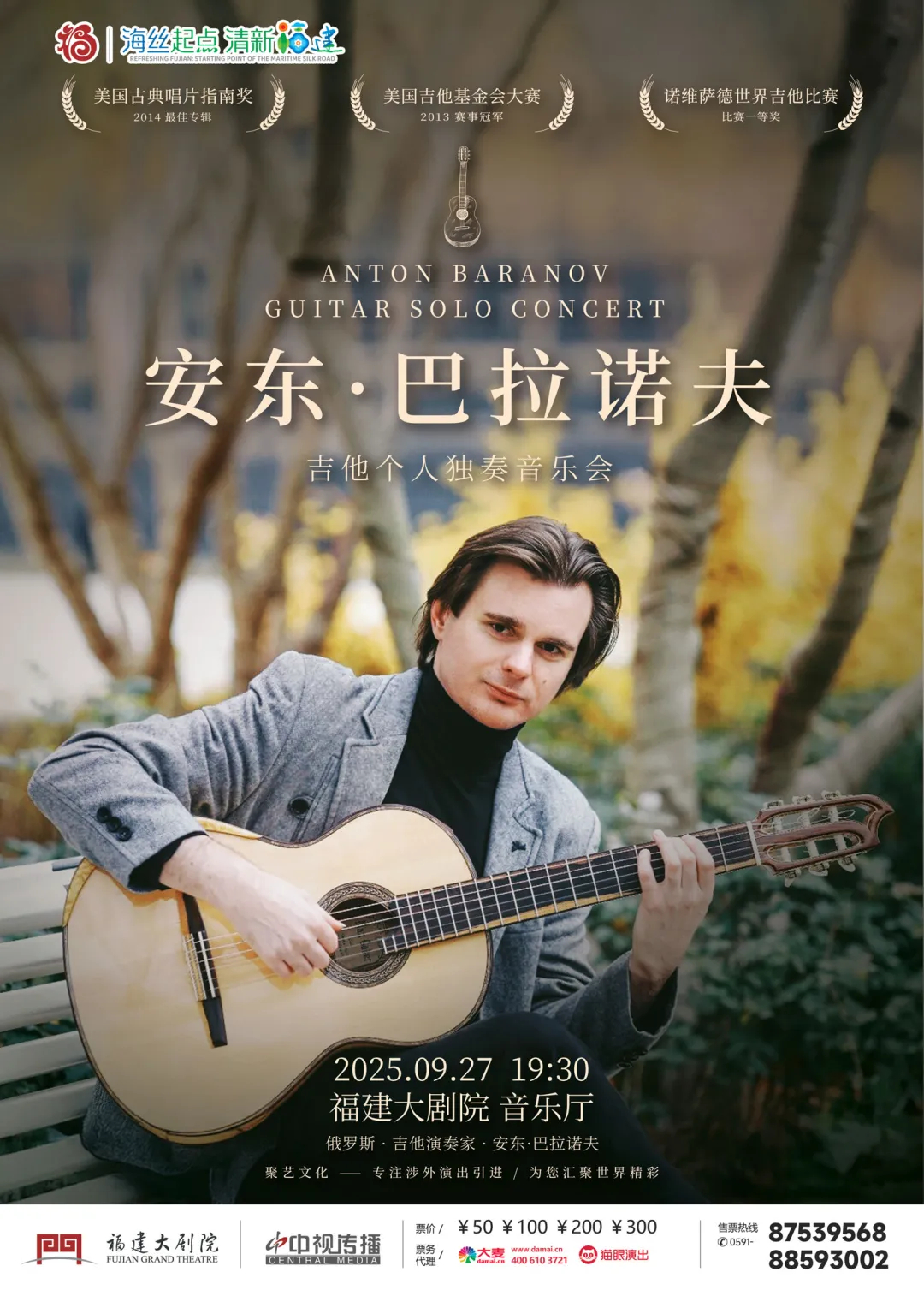 Witness one of today’s finest guitarists, Anton Baranov, live at the Fujian Grand Theater on Sept 27! Winner of the 2013 Guitar Foundation of America Competition and over 20 prestigious global awards, this Russian virtuoso will bring his unmatched artistry to the stage for an unforgettable evening.