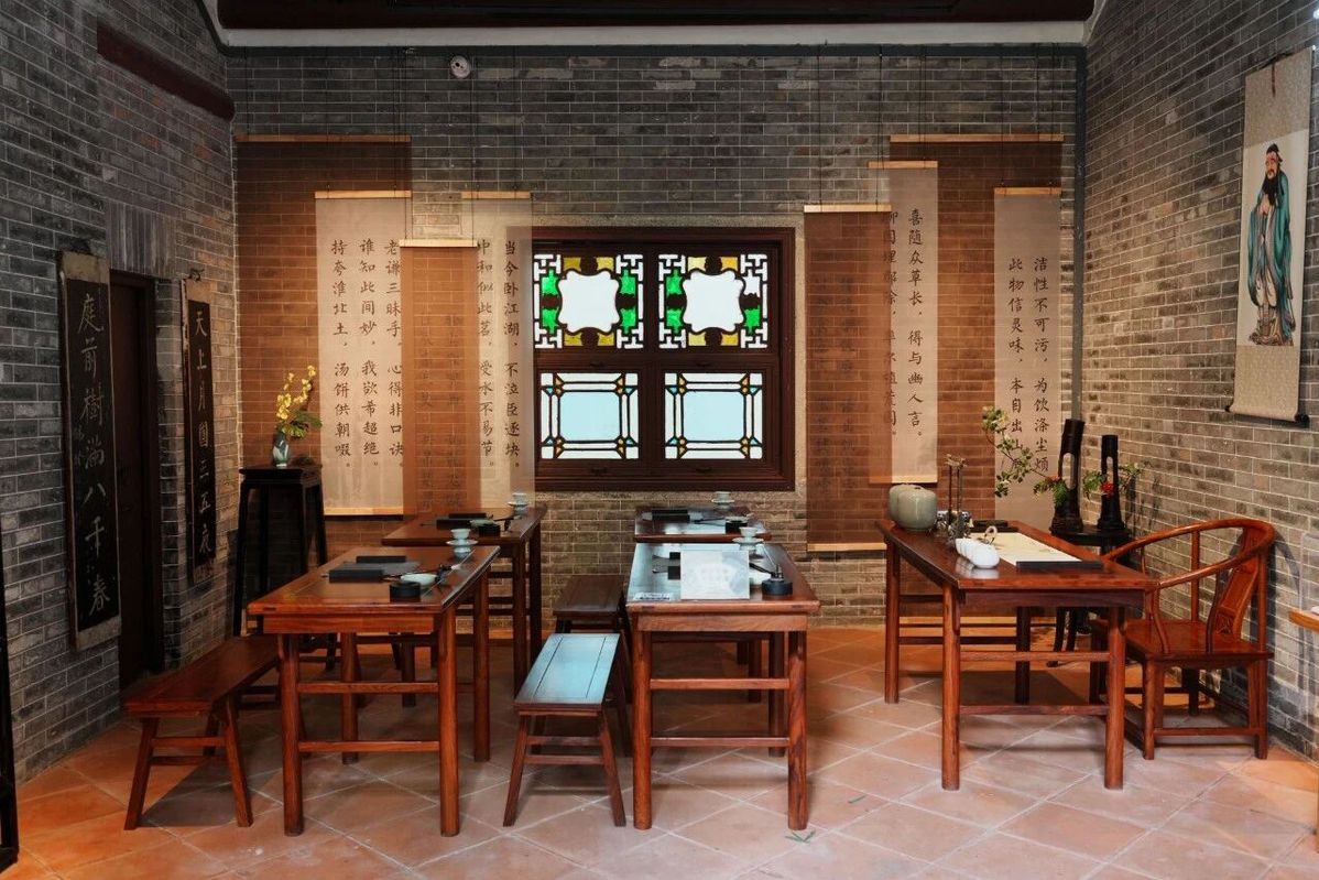 The show transforms the halls of the Yuyan Academy into immersive spaces where architecture and tea culture blend harmoniously. [Photo/Guangzhou Maritime Museum official WeChat account]