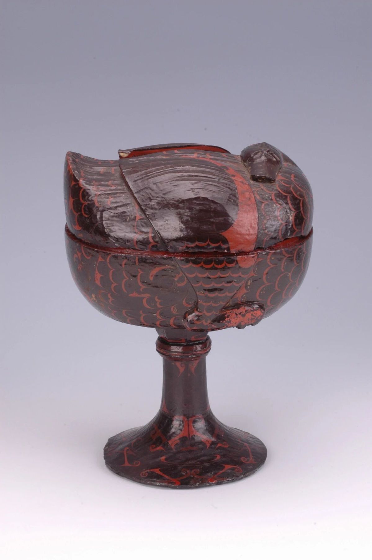 Mandarin duck-shaped lacquer box from over 2,000 years ago