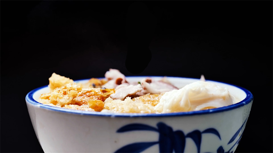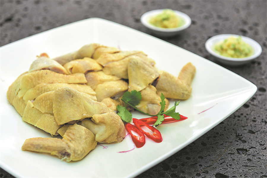 In Haikou, this flagship dish is known as Wenchang chicken. It features fragrant chicken-oil rice served with poached chicken in a bowl. The dish relies on high-quality chicken sourced from the city of Wenchang, located in the northeastern part of the island.