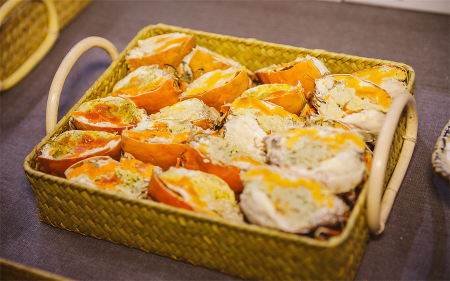 Traveling south from Haikou to Wanning, a journey of one to two hours by train, seafood enthusiasts can savor steamed Hele crab, a specialty from Wanning's coastal Hele town. These lightly steamed crabs are accompanied by a ginger-vinegar dipping sauce that accentuates the natural sweetness of the crab meat.
