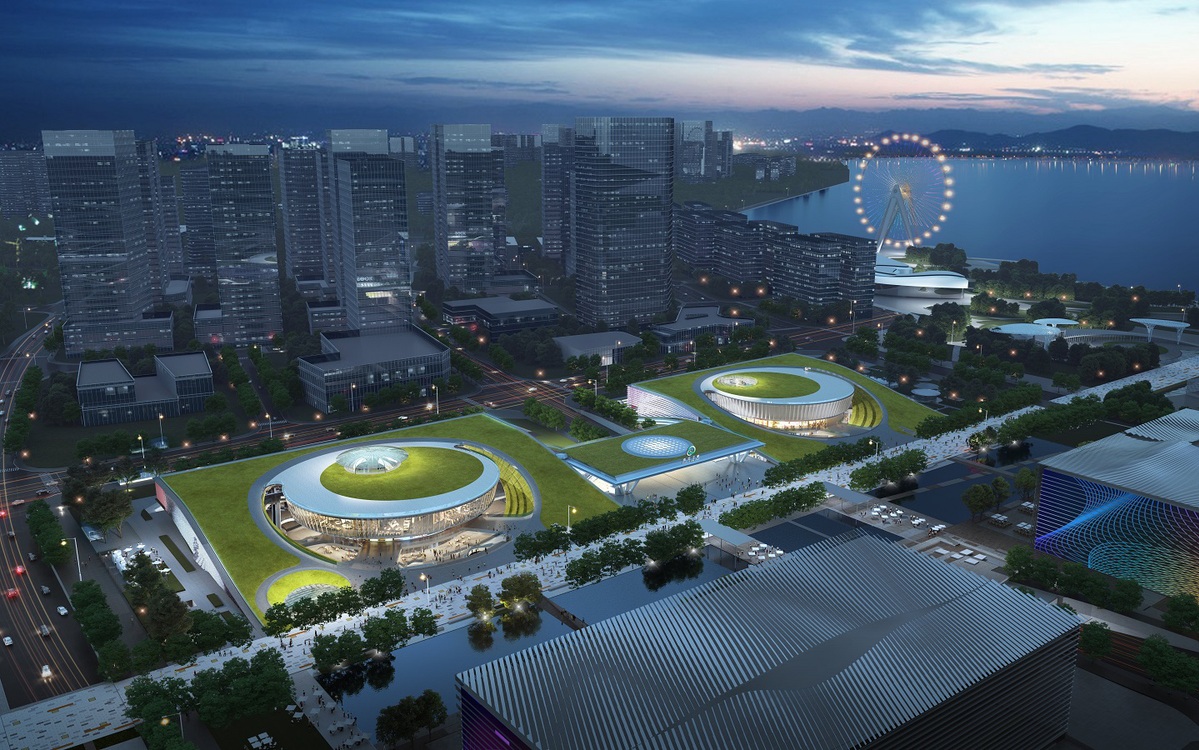 An aerial night view rendering of the Eyes of the GBA bookstore. [Photo provided to chinadaily.com.cn]
