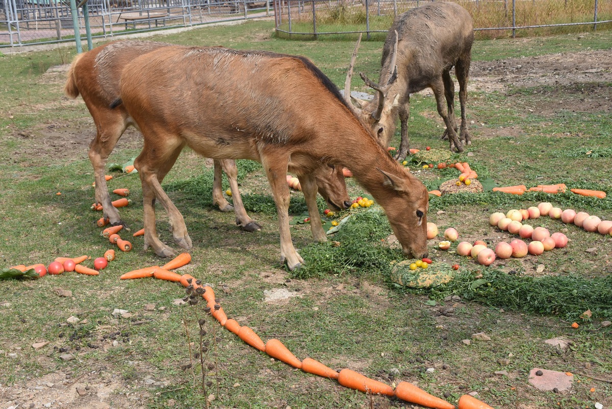 Harbin zoo prepares Mid-Autumn Festival feast for animals