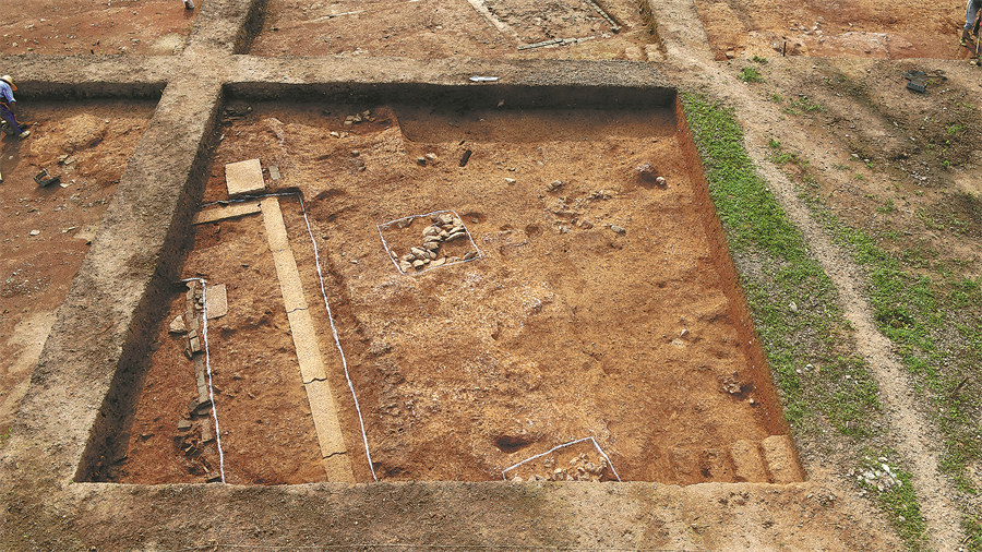The southeastern corner of a large shicangzi (stone burial chamber), positioned below the foundational plinth of the former offering hall. [Photo provided to China Daily]