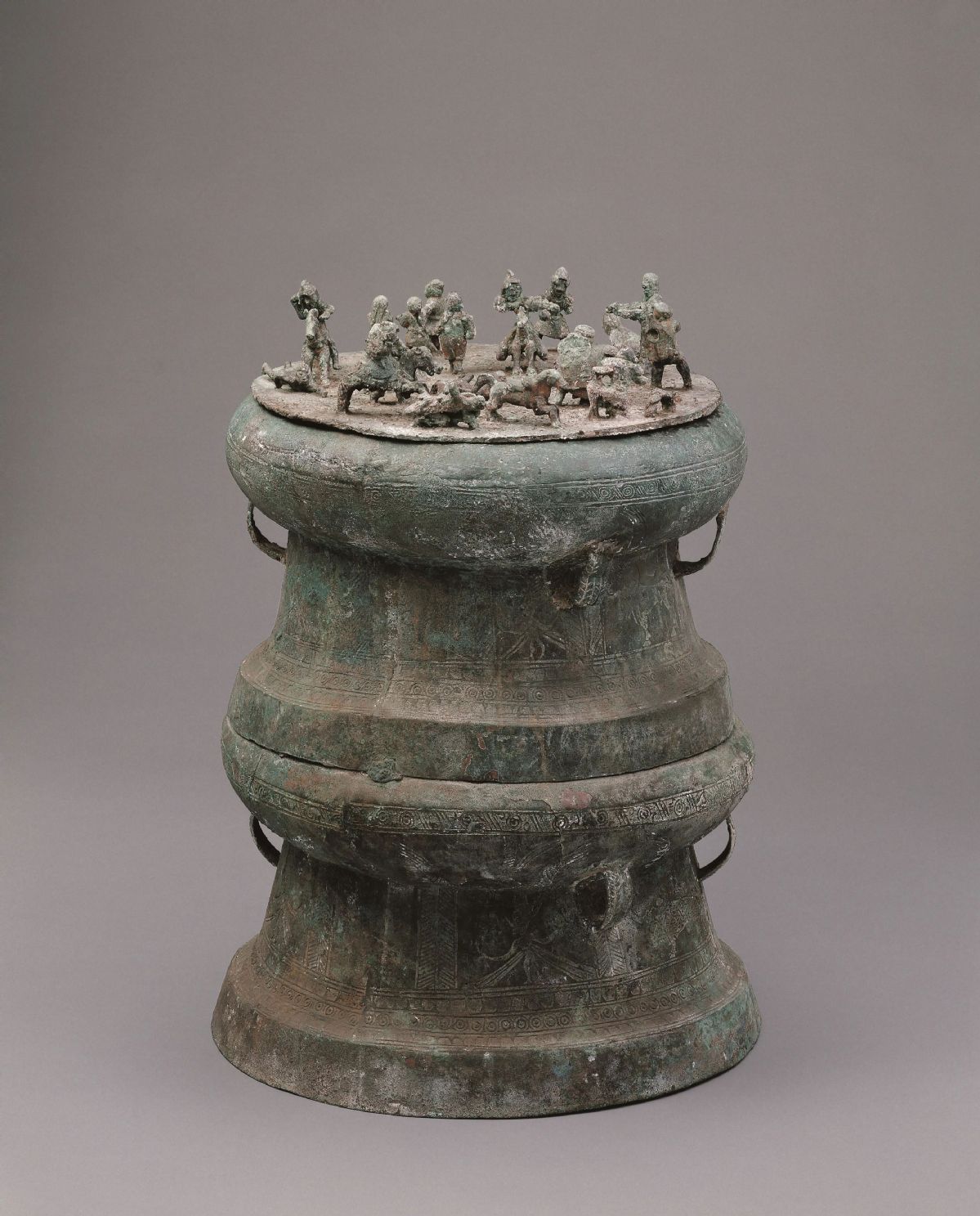Bronze shell container with a lid decorated with battle scenes, Western Han Dynasty (206 BC-AD 24), from the collection of the Yunnan Provincial Museum [Photo/Suzhou Museum official WeChat account]