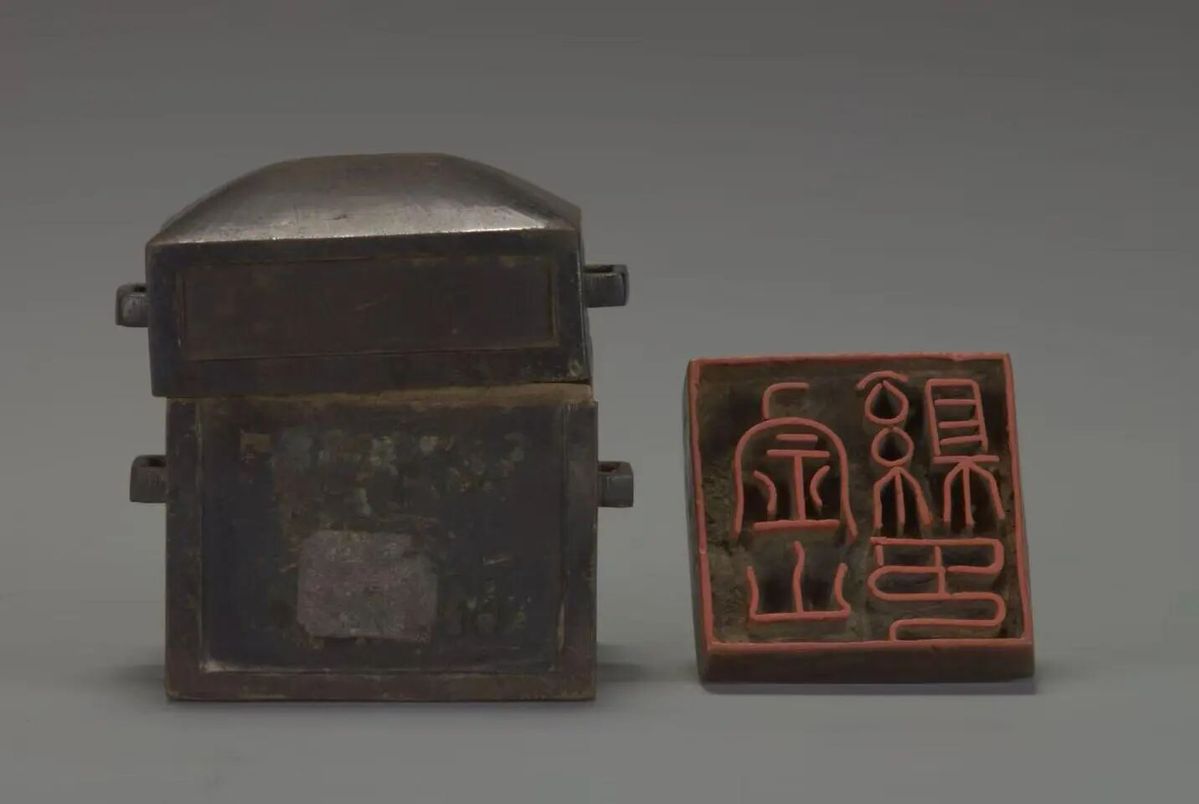 Bronze seal of Jinshan county and its seal case, Tang Dynasty (618-907), from the collection of the Zhejiang Provincial Museum [Photo/Hebei Museum official WeChat account]