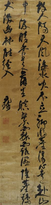 Five-character regulated verse poem in cursive script, calligraphy on silk damask by Ni Yuanlu, Ming Dynasty, from the collection of the Shanxi Museum [Photo/provided to chinaservicesinfo.com]