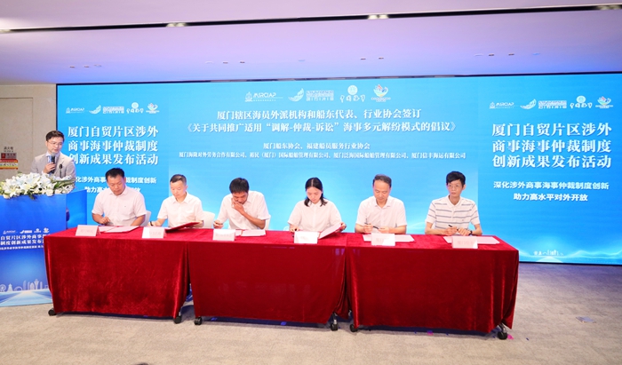 Multiple Xiamen-based ship management companies, seafarer dispatching agencies, and related industry associations jointly signed a memorandum of cooperation, committing to promoting a diversified dispute resolution model of "mediation-arbitration-litigation" within the sector.