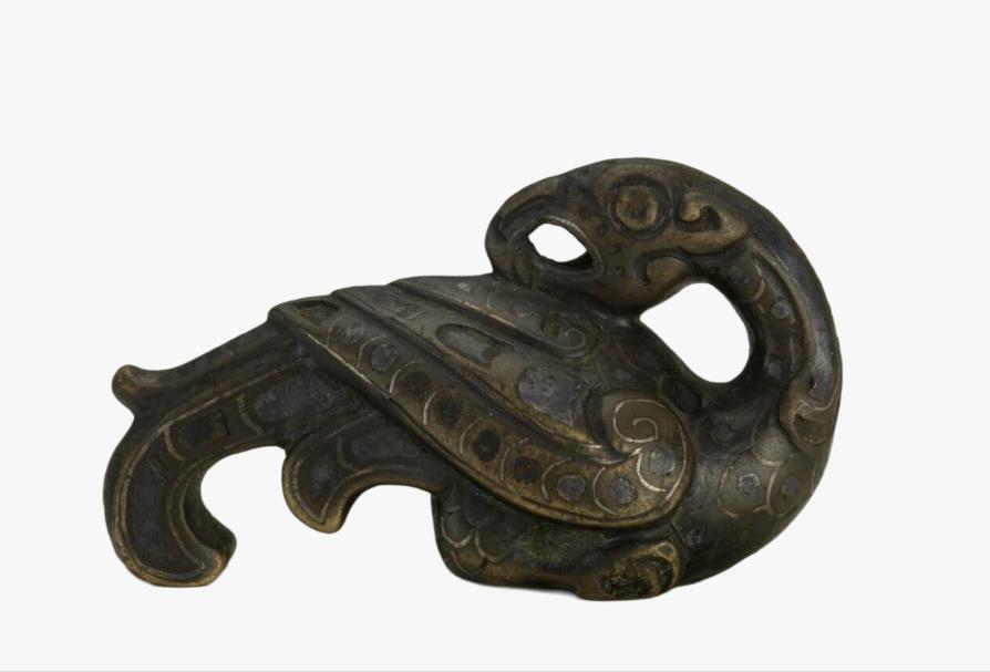 Bird-shaped bronze paperweight embedded with silver decorations, Ming Dynasty (1368-1644) [Photo/Tianjin Museum official WeChat account]