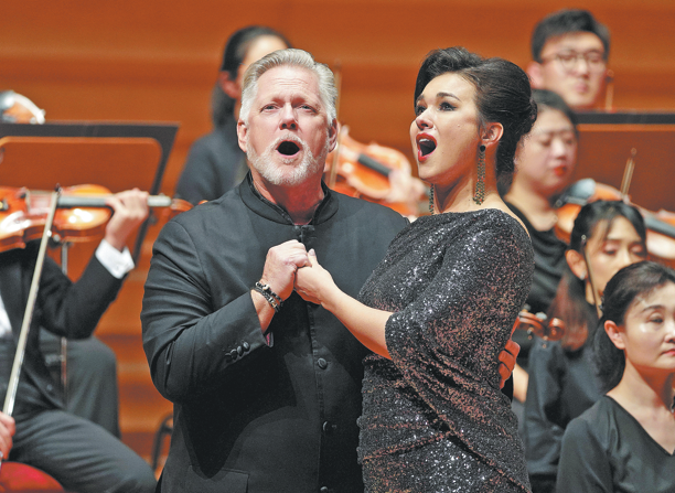 Gregory Kunde and Olga Peretyatko perform a duet at the Shanghai concert. CAO JIAMIAO/FOR CHINA DAILY