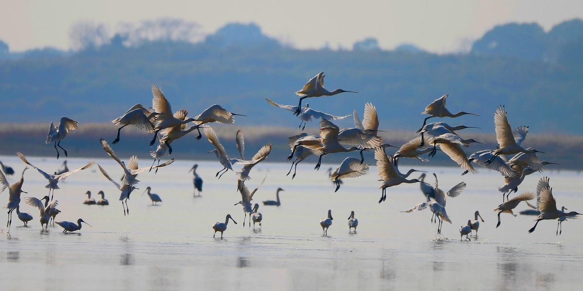 As the early arrivals among winter migrants, bean geese and spot-billed ducks are usually the first to reach Poyang Lake.