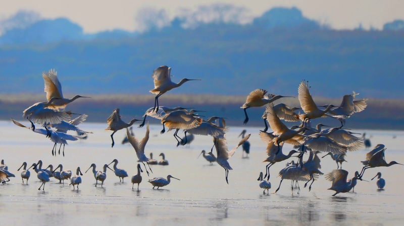 At Wucheng, a well-known "migratory bird town" on the Poyang Lake reserve, official Wang Xiaolong also spotted an advance group of migratory birds.