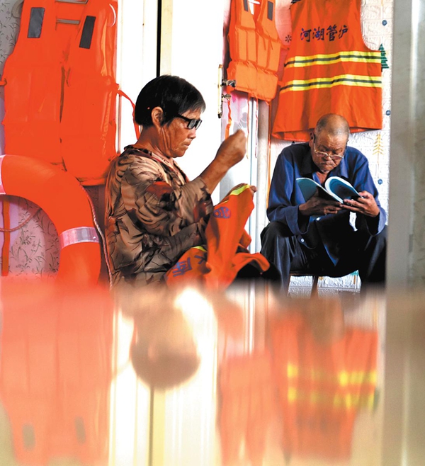 Song Hengchun's wife sews up uniforms in Dongzhaozhuang village of Yiyuan county, Shandong province, on Aug 6. ZHAO DONGSHAN/CHEN MING/FOR CHINA DAILY